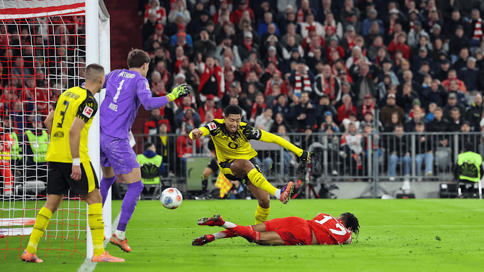 虎扑10月19日讯 本轮德甲联赛,拜仁慕尼黑在安联球场2-1击败多特蒙德。本场比赛,拜仁慕尼黑在比赛下半场场面胶着的情况下利用多特蒙德中场球员乔布-贝林厄姆的解围失误,打进扩大比分的进球。